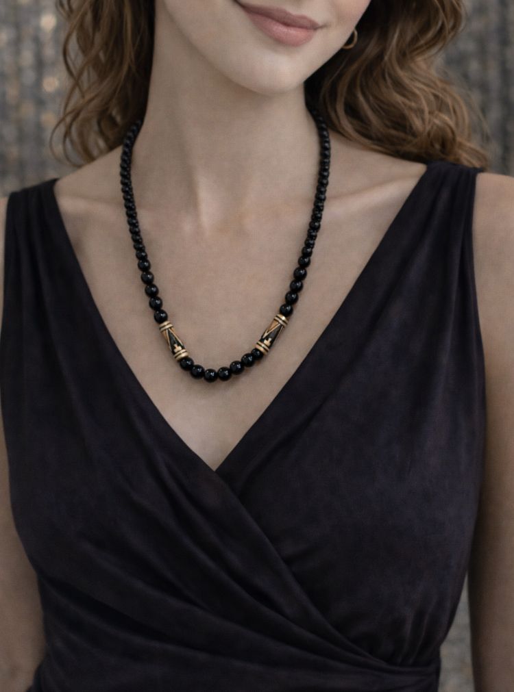 El ensamble artesanal resalta la pureza del material y convierte al collar en una pieza atemporal, fácil de integrar tanto en atuendos cotidianos como en espacios más formales.