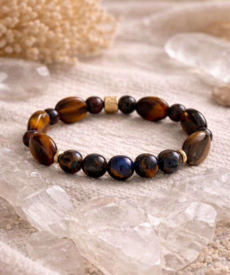 Raíz Ancestral es una pulsera que conecta con la fuerza de la tierra y la sabiduría heredada. Su diseño armoniza tonos cálidos y profundos que evocan estabilidad, protección y arraigo interior. Cada piedra representa un vínculo con lo esencial, recordando que avanzar con firmeza nace de estar bien enraizado.